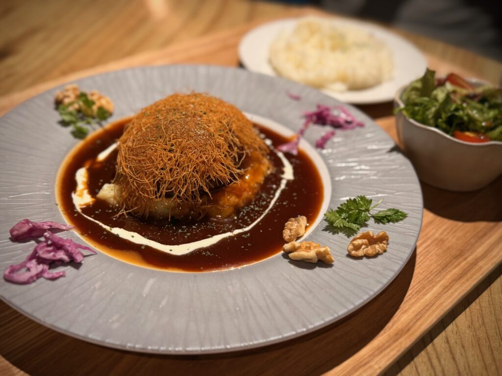 コツは、テーブルライトなどあれば、食事にライトが当たる位置までお皿をずらす。