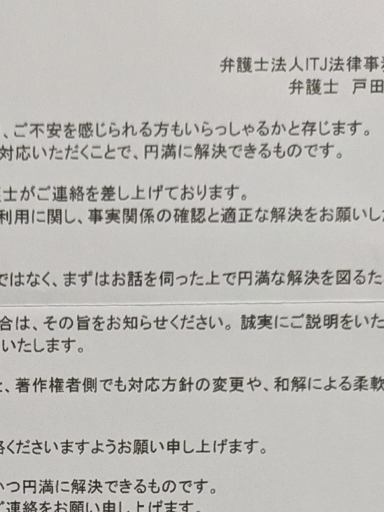 ITJ法律事務所(権利会社側代理人)は、プロバイダから開示請求があると、発信者のもとに受任通知を送ってきます。
