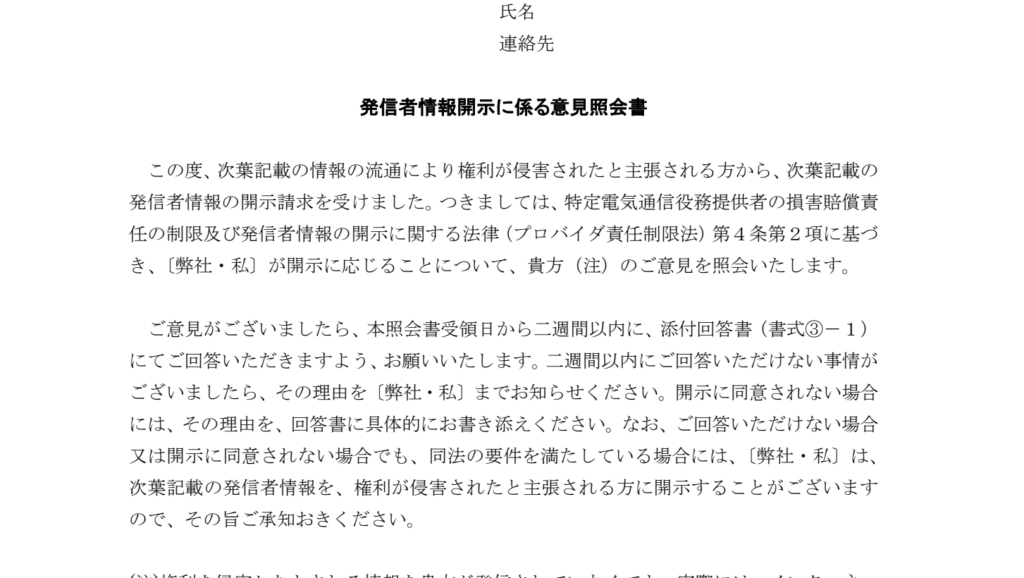 「発信者情報開示にかかる意見照会書」がプロバイダから届いた場合を前提にお話しします。